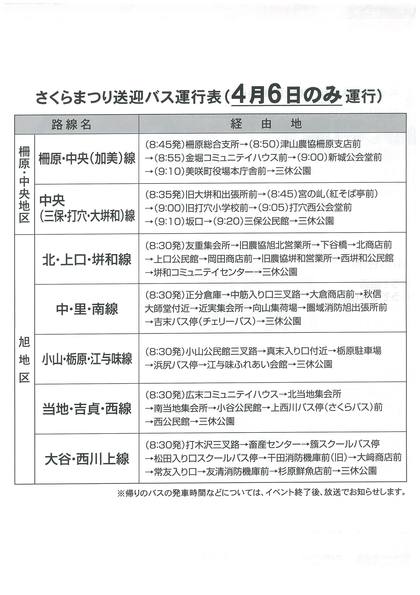 - さくらまつりバス運行表