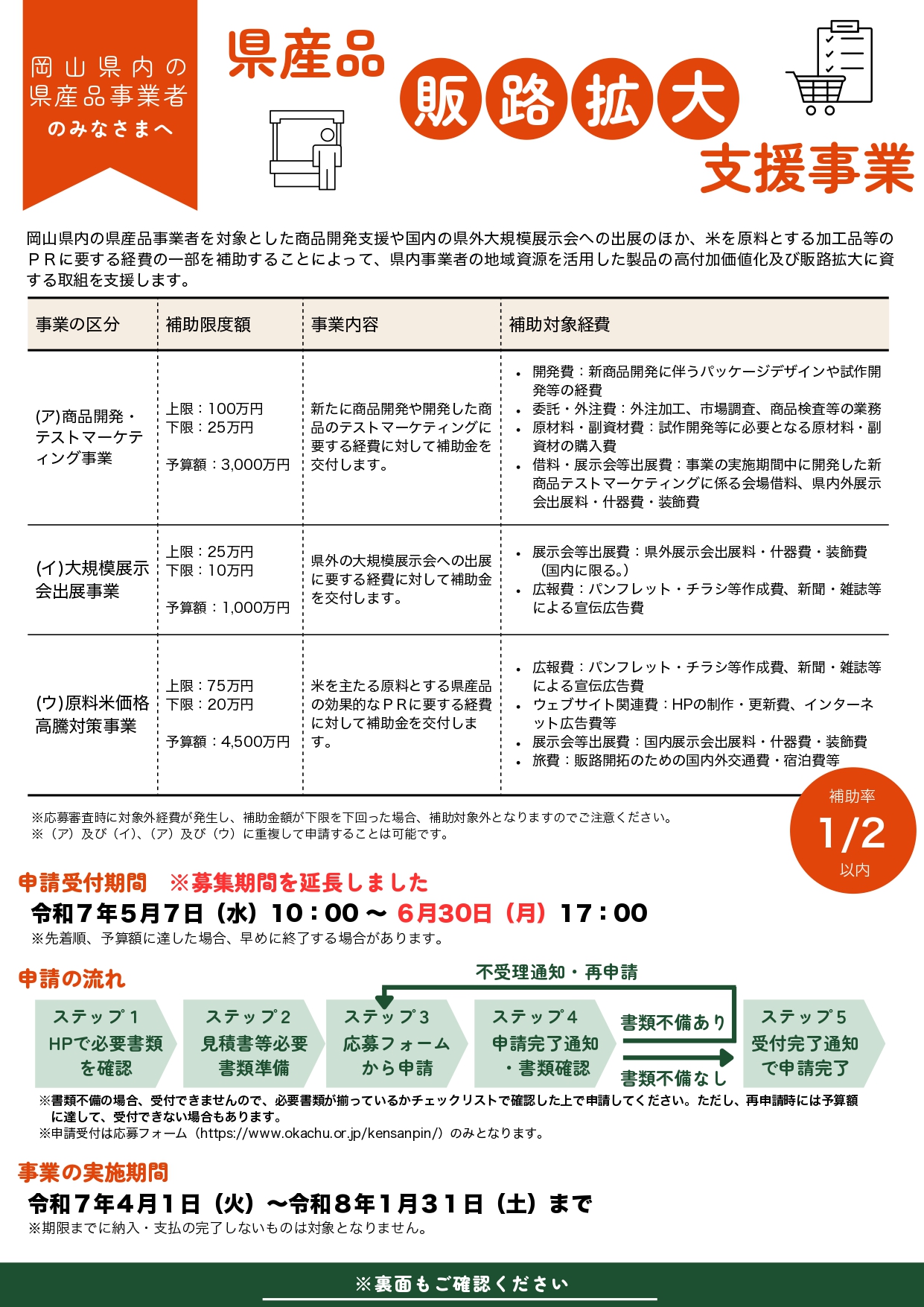 - スケジュールに記載の会議・展示商談会・テスト販売(※)に参加し、必要に応じてサンプルの提供ができる事業者であること。