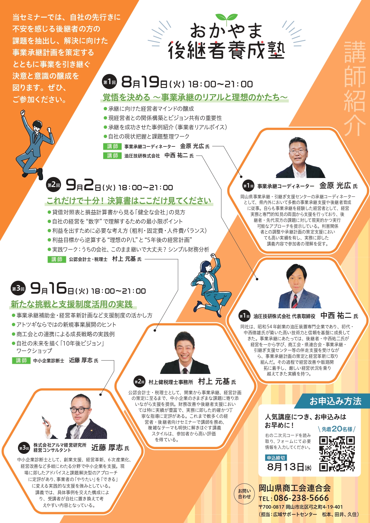 「おかやま後継者養成塾」の開催について 受講生募集!!