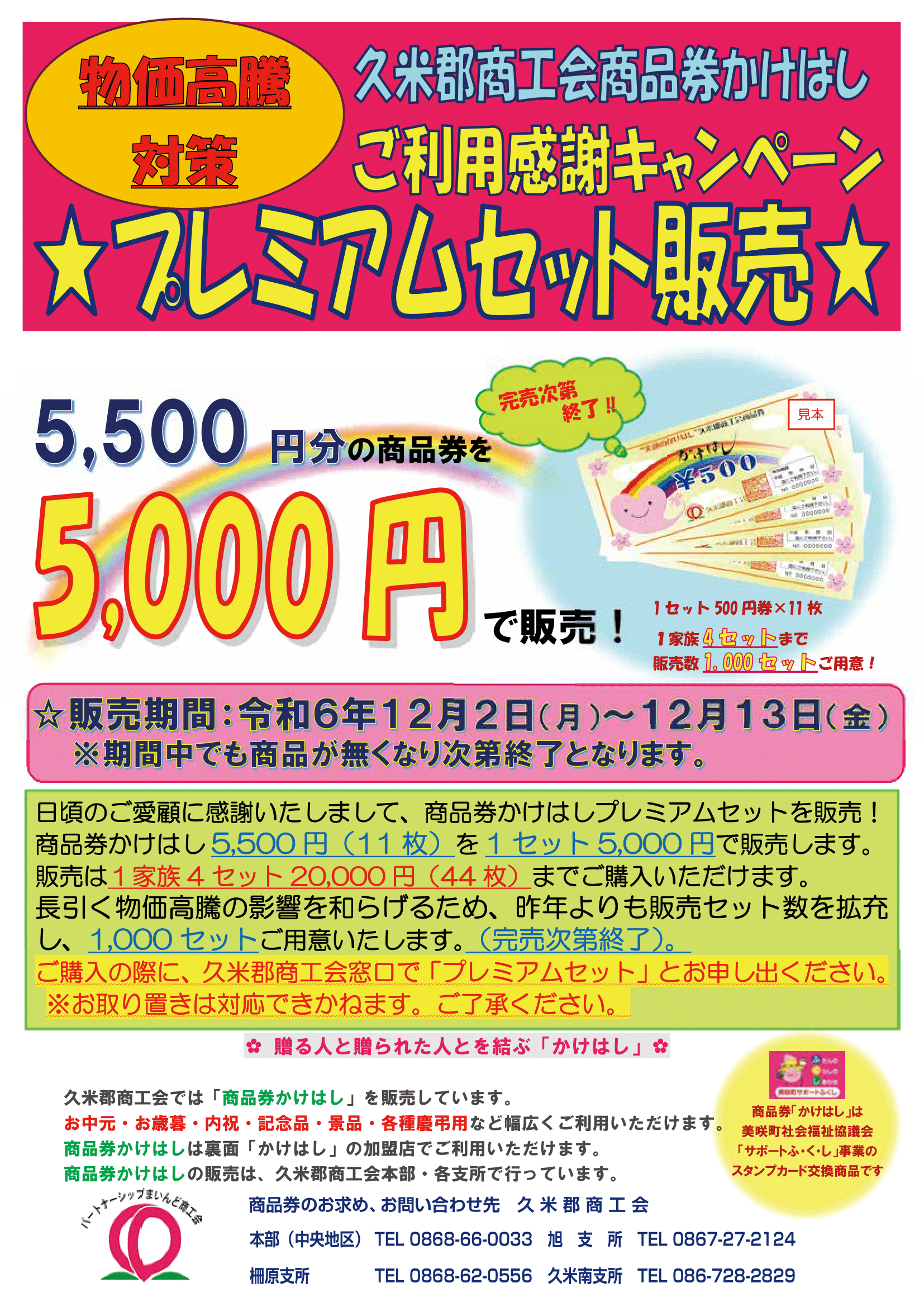 久米郡商工会では日頃のご愛顧に感謝いたしまして、今年もお得な商品券「かけはし」プレミアムセットの販売を開始いたします!