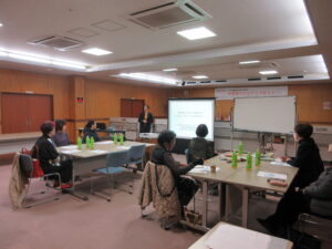 中小企業診断士を講師に招き、旅行者の年代や性別割合や旅行に係る費用の割合などについて学びました。講義の後にグループワークも行い、久米郡内での新商品を考案しました。自社の新商品開発のヒントやプロセスについて学ぶことができました。