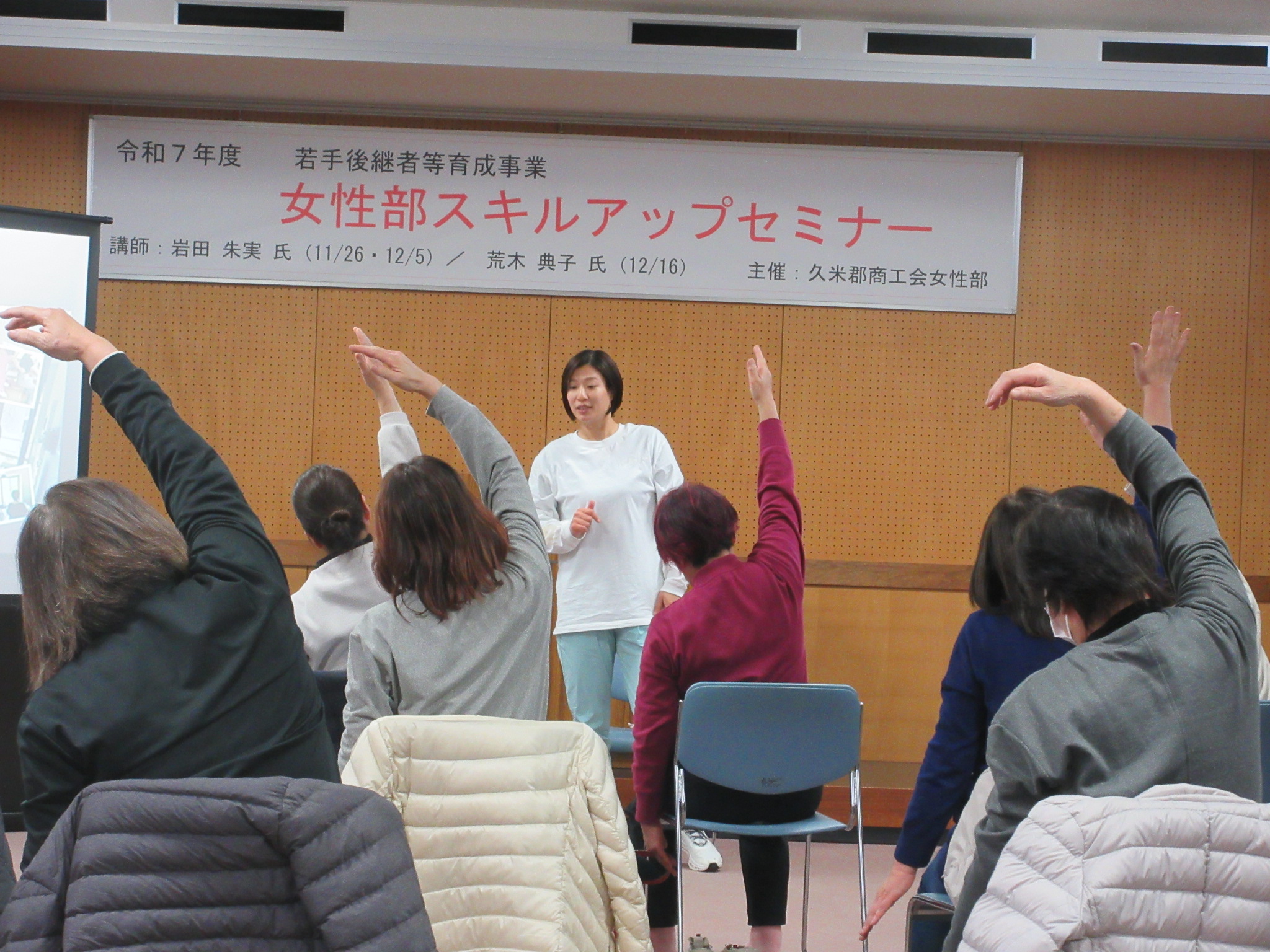 講師の実体験を基に、イスを使用した呼吸法による体や心のバランスを大切にした簡単な運動の方法を学びました。事業を行ううえで欠かせない「健康」の大切さを改めて実感し、実践的なスキルを身につけることができました。全3回を通して、非常に有意義なセミナーとなりました。