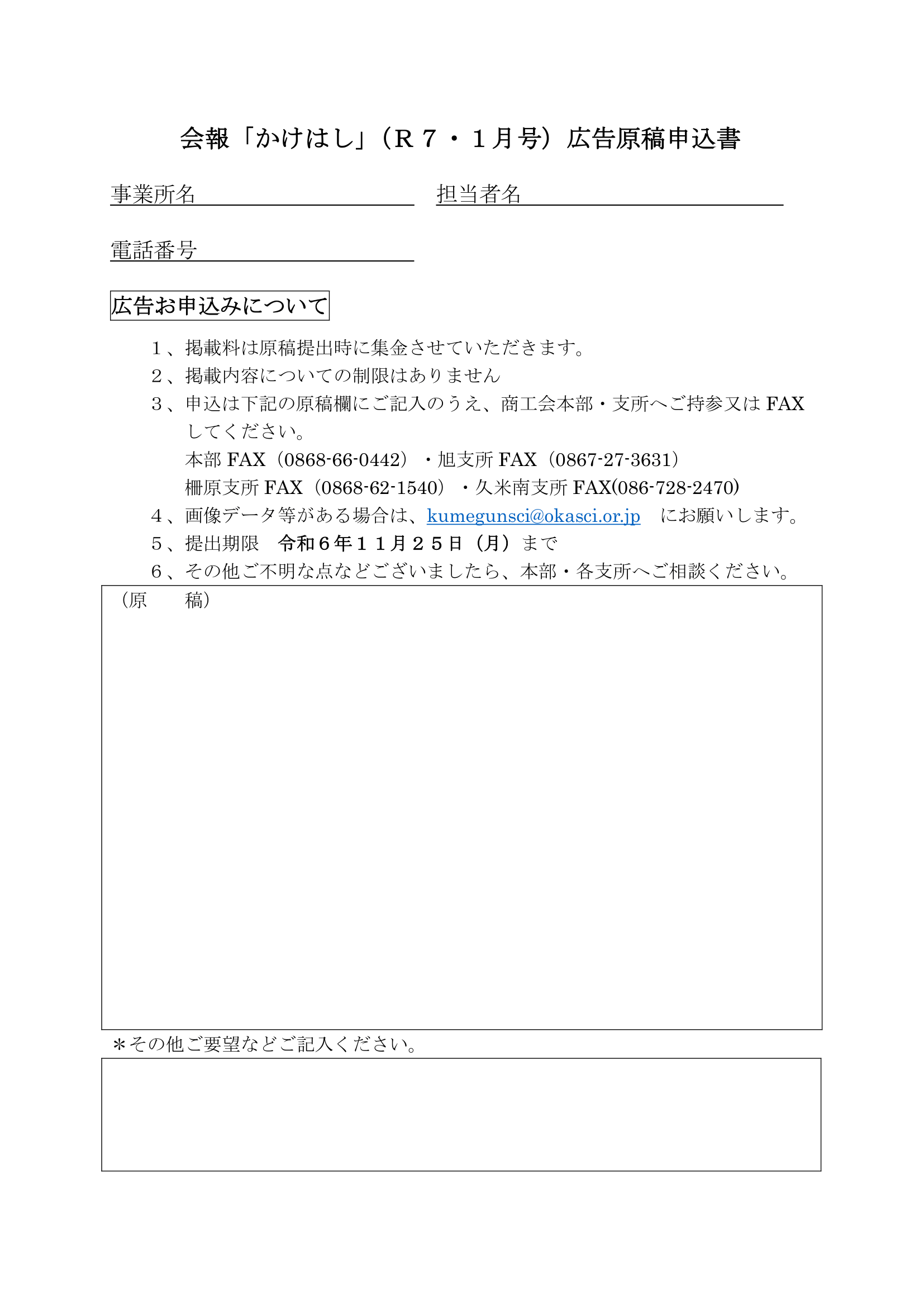 ⇓広告原稿申込書⇓
